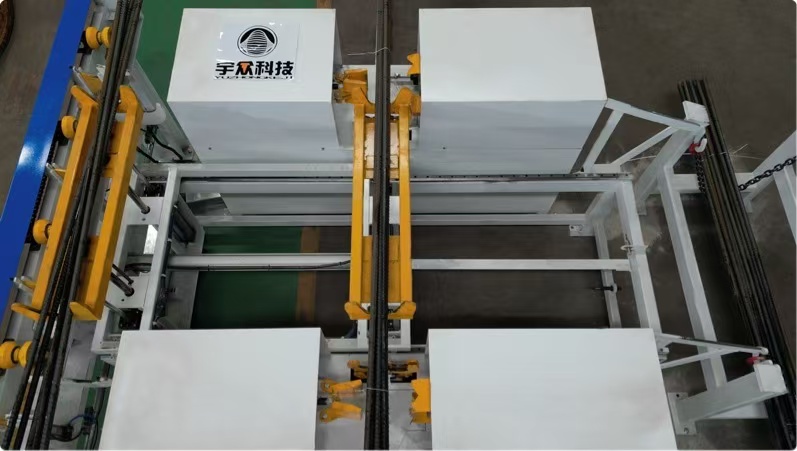 两套铁丝打包机构,铁丝打包紧固牢靠;两套托举机构,打包的同时不影响储料;可自动完成5根锚杆带完螺母后的收集、打捆。