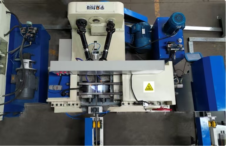 主要由剪前辊道、平口切断机、剪后辊道和伺服定尺小车组成。平口切断机采用圆弧刀片,锚杆端面平整,便于缩径滚丝。伺服定尺小车,可完成长度1.5-3米锚杆的无级定尺,定尺精度±5mm。剪切完成后,剪后辊道可直接用顶板卸料至斜口剪切工位。