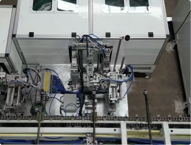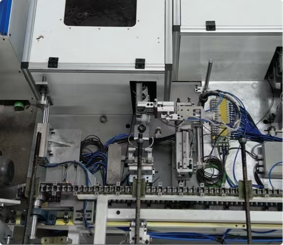 采用等距链式平移输送机构,周转过程中不会对螺纹造成损坏;球形垫采用震动盘式上料,锚杆输送到位后,自动托举起来并固定,然后机械手自动抓取穿装入锚杆;铁垫和尼龙垫均采用震动盘式上料,锚杆输送到位后,自动托举起来并固定,然后机械手自动抓取组合后的垫片(可选择单铁垫模式、单铁垫单尼龙垫模式或者双铁垫单尼龙模式)穿装入锚杆;螺母采用震动盘式上料,锚杆输送到位后,自动托举起来并固定,然后机械手自动抓取穿装入锚杆;每个震动盘均用隔音棉加防护罩降低噪音;可选择性启用每个附件功能。