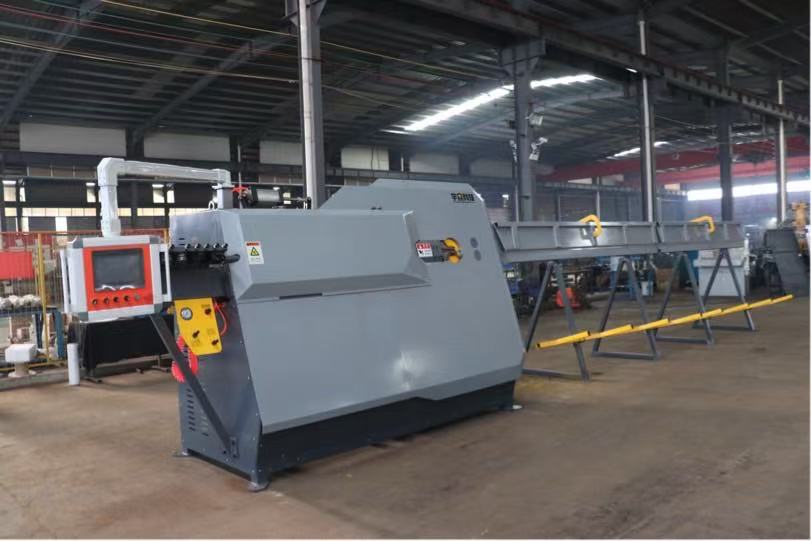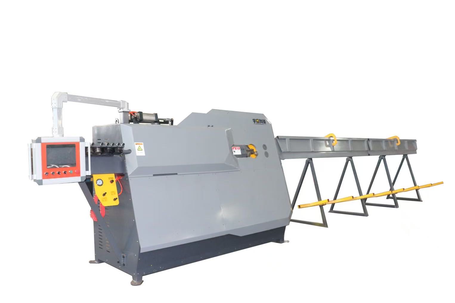 宇众数控弯箍板筋一体机,能自动完成钢筋的矫直、定尺弯曲成型和切断等工序,省时、省力、省人、省料、加工精度高、产品效率高,可实现全自动、不间断的流水线钢筋加工作业。该产品广泛用于铁路、公路、桥梁、房地产、大型钢筋加工厂等领域。